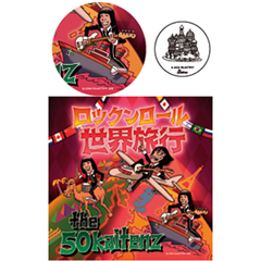 [emoji:76]John Holmstrom氏が描いたロックンロール世界旅行のジャケットイラストを大胆に切り抜いた缶バッヂとジャケットのイラストのステッカーのセット。