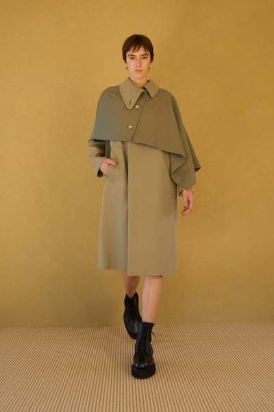 COLLARLESS LONG COAT×CAPE SET[KHAKI GREEN]