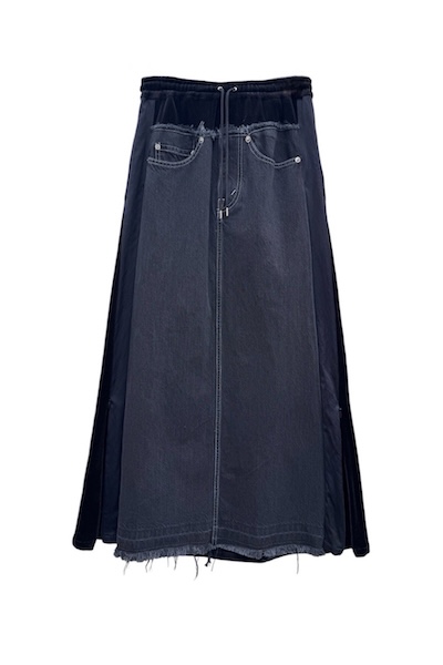 HYBRID DENIM VELOUR SKIRT[BLACK×BLACK]