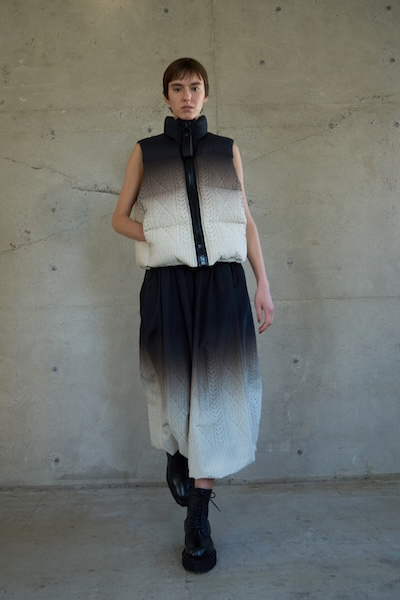 CABLE PRINT DOWN VEST [BLACK-MULTI]