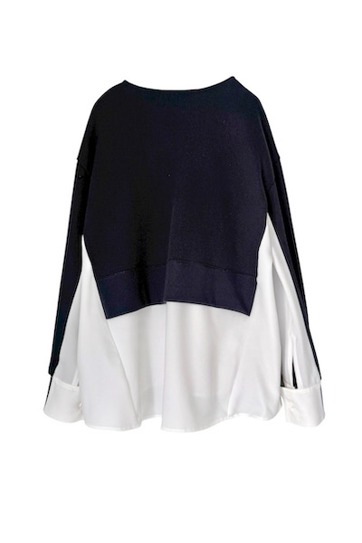 クリアな表面感でカジュアルすぎないオーバーサイズのVネック裏毛トップスに程よい肉感のきれい見えポリエステル素材のシャツをレイヤードしたようなデザインシャツ。程よくリラクシーで抜け感もあるので着るだけでお洒落見えし、合わせるアイテム次第で様々なスタイリングをお楽しみいただけます。