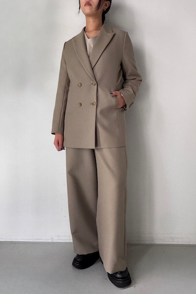 ウエストは後ろゴム仕様で快適な穿き心地を実現しつつ、フロントはすっきりとした仕立てできちんと感も演出してくれます。単品ではもちろん、同素材のジャケットと合わせてセットアップとしてもお楽しみいただける、汎用性の高い1本です。