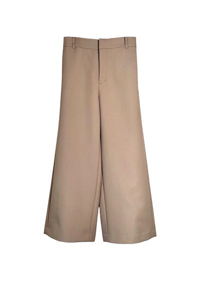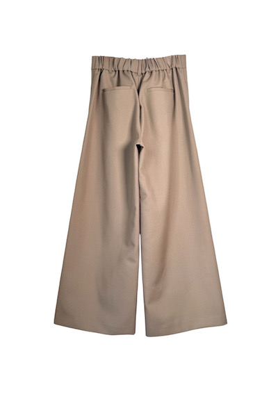 ポリエステルをブレンドしたウールギャバジン素材を使用したワイドパンツ。程よいハリ感を兼ね備えた生地が、立体感のあるシルエットを生み出します。