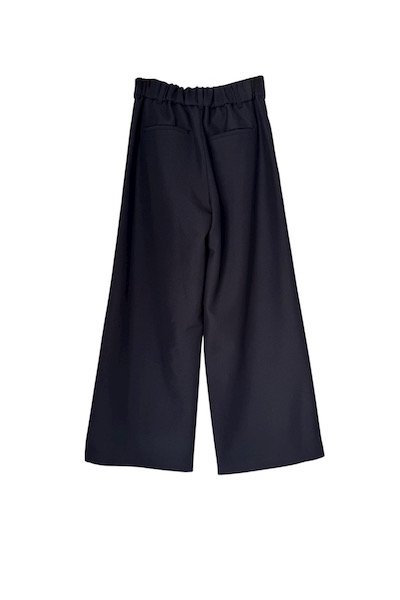 ポリエステルをブレンドしたウールギャバジン素材を使用したワイドパンツ。程よいハリ感を兼ね備えた生地が、立体感のあるシルエットを生み出します。