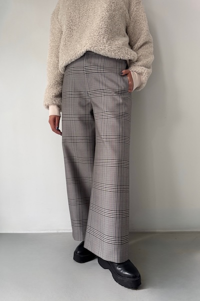 チェックウールギャバワイドパンツ [BROWN]