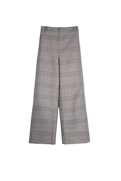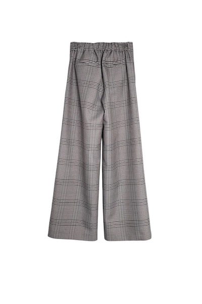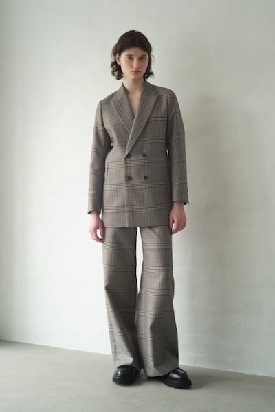ポリエステルをブレンドしたチェック柄のウールギャバジン素材を使用したワイドパンツ。程よいハリ感を兼ね備えた生地が、立体感のあるシルエットを生み出します。