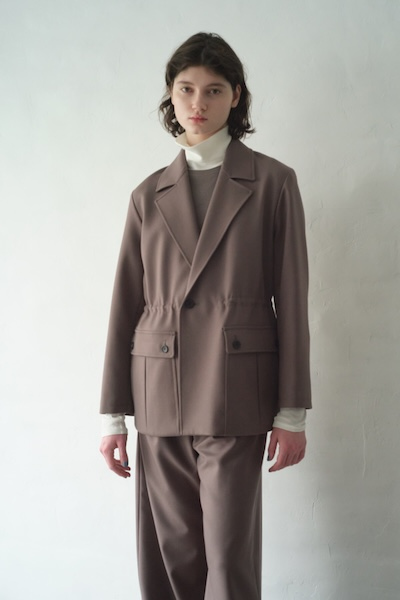 上質なバージンウールSuper100'sとビスコースをブレンドした2WAYストレッチ素材に、ハリコシがしっかりとある高収縮ポリエステルのLIMONTAを使用したスポーティー×テーラードがバランスよく組み合わさったジャケット。ウエスト部分には内側にドローコードを仕込みシルエットにニュアンスを与えられます。肩の力を抜いて着られるしなやかさを持ち合わせたジャケットは女性らしいエレガントなムードを演出してくれます。Quality