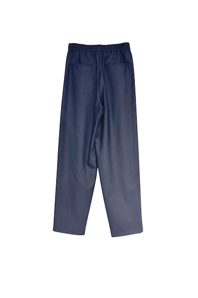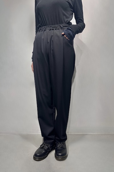 オーストラリア産バージンウール Super100’s とビスコースをブレンドした程よい温かみと、柔らかさ・落ち感のある上品な風合いが魅力的な素材を使用したテーパードパンツ。ウエストはゴム仕様でストレスフリーな穿き心地。フロントタックから立体的なポケットデザインがアクセントになり、シンプルながらもリラックス感のあるシルエットで、ON/OFF問わず幅広く活躍します。