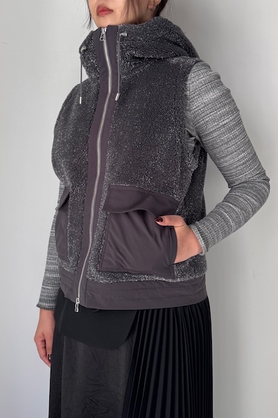 ラメボアジップ アップベスト [DARK GREY×SILVER]