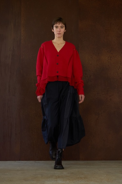 HYBRID TULLE KNIT CARDIGAN [RED]