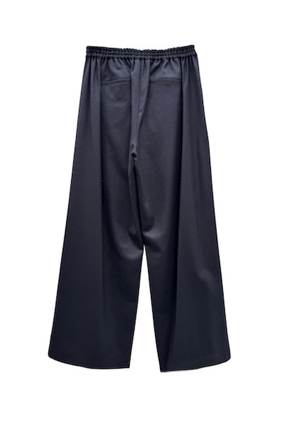厳選された品質の高いフラノ素材を使用したワイドパンツ。前身頃にはストライプ、後身頃は無地を使用したさりげないコントラストデザイン。シンプルながら奥行きがあり、リラックス感とエレガントさを両立させ様々なスタイリングに活躍する1本。