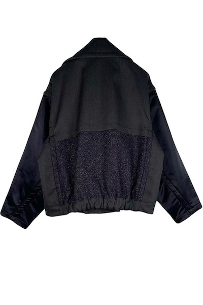 1枚の素材をメインに、表裏でまったく異なる表情を見せるリバーシブル仕様のショートジャケット。上質なジーロンファーストラムを使用したラムウールは、美しい艶感となめらかな肌触り、そしてソフトな風合いが魅力です。シルエットはオーバーサイズのブルゾンタイプ。ビッグカラーとゆとりのあるスリーブが生み出す抜け感が、羽織るだけでこなれた印象に。ショート丈ならではのバランスが、ボリュームのあるボトムスやワンピースとも好相性です。別布にあしらったナイロン素材が艶やかに光を受け、ラグジュアリーなムードをプラス。カジュアルからドレッシーまで、幅広いスタイルに取り入れやすい一着に仕上がっています。Quality