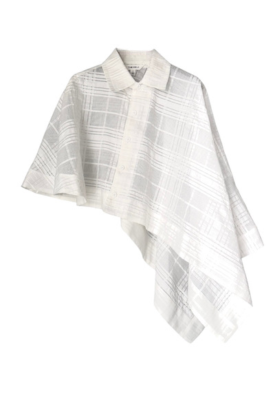 SHEER CHECK JACQUARD CAPE & VEST SET [WHITE]