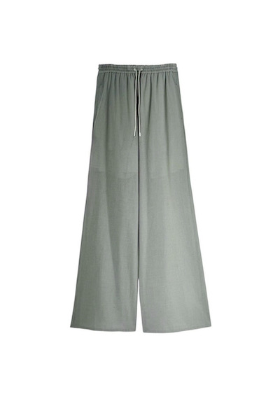 ウエストはゴムとドローストリング仕様で、リラックス感のある快適な履き心地。シワになりにくく、デイリーからきれいめスタイルまで幅広く活躍する一着です。