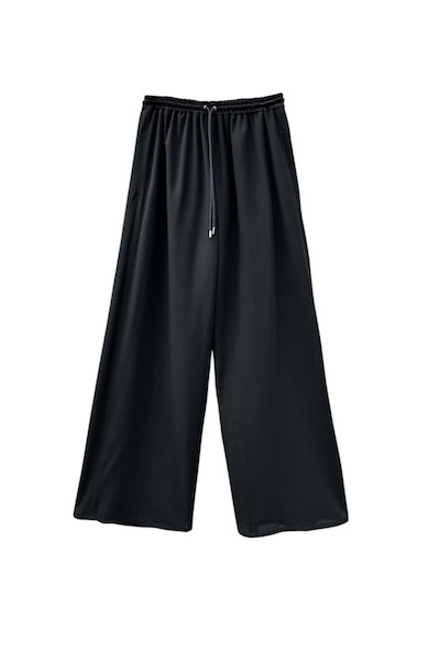 ウエストはゴムとドローストリング仕様で、リラックス感のある快適な履き心地。シワになりにくく、デイリーからきれいめスタイルまで幅広く活躍する一着です。