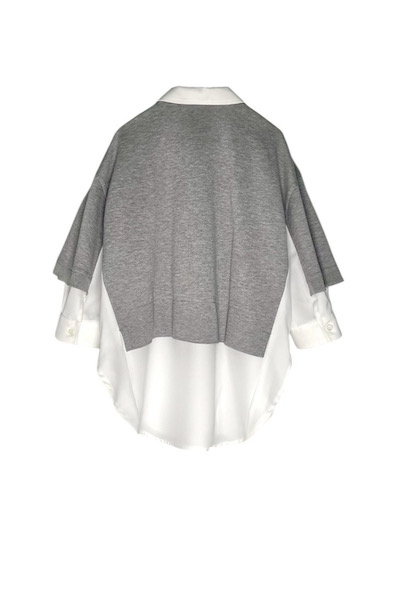 コットン100%で上品な光沢感のある鹿の子素材と柔らかく落ち感のあるツイル素材を組み合わせたレイヤードデザイントップス。ポロシャツとシャツをバランスよくレイヤードしたデザインは1枚でスタイリングが完成します。ゆとりのあるシルエットは計算されたパターン、素材のコントラストによって全体がすっきりと見えるのもポイントです。Quality