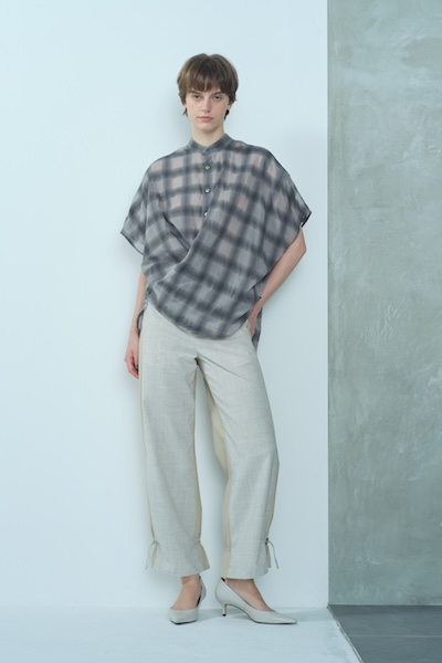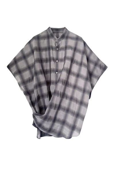 程よいシアー感とシャドーチェックの組み合わせが魅力的。やわらかな風合いで着心地もよい素材です。ゆったりとしたシルエットで身体のラインを拾わないのに程よいシアー感で細見えが叶う1着。両脇裾に釦がついており、カシュクールシャツとしてもアレンジが可能です。Quality