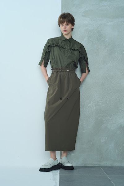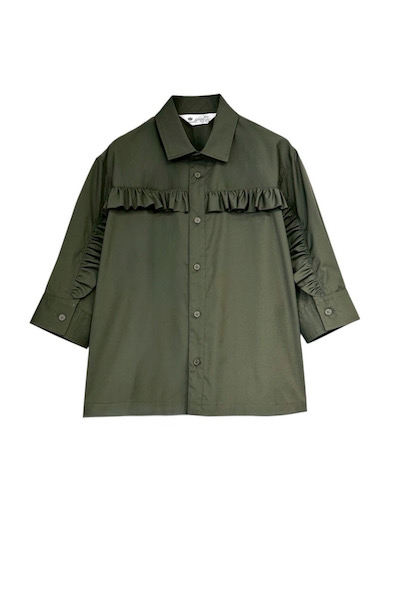 WASHABLEフリルギャザーシャツ [KHAKI GREEN]