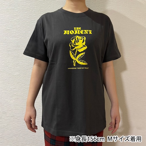 カバー&セルフカバーEP「THE MOMENT」のジャケットイラストをイメージした、ジェリー鵜飼さん書き下ろしによるバラの花のプリントTシャツです。ボディーは着合わせしやすいスミカラーに黄色のワンポイントプリントです。 【サイズ】 Mサイズ:身丈69/身幅52/袖丈20(約cm) Lサイズ:身丈73/身幅55/袖丈22(約cm) XLサイズ:身丈77/身幅58/袖丈24(約cm) 【カラー】 スミ 【素材】 コットン100% ※上記サイズは目安です。 伸縮性のある素材を使用しているため、商品によってボディのサイズが異なりますので、±3cm程度の個体差がある場合がございます。 ※照明の関係により、実際よりも色味が違って見える場合があります。 またパソコン・スマートフォンなどの環境により、若干製品と画像のカラーが異なる場合もございます。